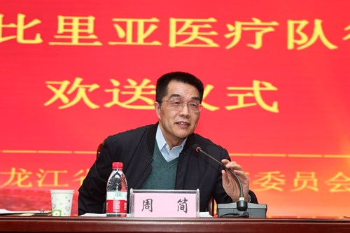 周簡書記代表國家衛(wèi)生健康委,以“再武裝、再出發(fā)、再戰(zhàn)斗”為題,從思想準(zhǔn)備、組織準(zhǔn)備、技術(shù)準(zhǔn)備、物資準(zhǔn)備等四個(gè)方面向醫(yī)療隊(duì)寄語。他指出,中國對(duì)外衛(wèi)生援助淵遠(yuǎn)流長,在半個(gè)多世紀(jì)的時(shí)間里,黑龍江省共派出1030人次醫(yī)務(wù)工作者參與了援外醫(yī)療工作,積極踐行國際人道主義精神,勇于克服種種困難,砥礪前行,為受援國留下了“帶不走的醫(yī)療隊(duì)”。醫(yī)療隊(duì)促進(jìn)了當(dāng)?shù)蒯t(yī)療衛(wèi)生事業(yè)的發(fā)展,有力地支持了我國的外交工作,為推進(jìn)人類和平與發(fā)展的崇高事業(yè)做出了貢獻(xiàn)。當(dāng)前,面對(duì)全球肆虐的新冠肺炎疫情,中非合作抗疫刻不容緩,醫(yī)療隊(duì)員面臨的任務(wù)更艱巨,但是使命光榮。