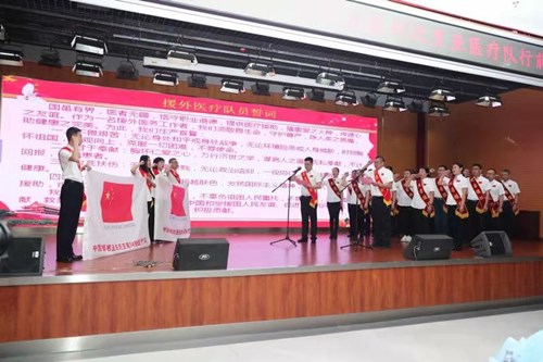 全體隊(duì)員面向隊(duì)旗進(jìn)行莊嚴(yán)宣誓,鄭重承諾將牢記援外醫(yī)療光榮使命,不辜負(fù)祖國人民重托,發(fā)揚(yáng)“不畏艱苦、甘于奉獻(xiàn)、救死扶傷、大愛無疆”的中國醫(yī)療隊(duì)精神,為增進(jìn)中國和受援國人民友誼、促進(jìn)世界和平做出積極貢獻(xiàn)。