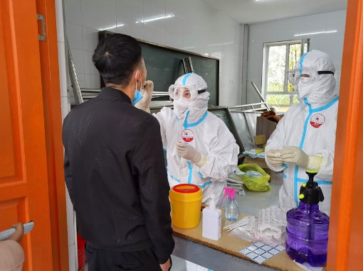 分到黑山鎮(zhèn)核酸采集的21名隊(duì)員,則由張艷護(hù)士長帶隊(duì),當(dāng)?shù)匾褯]有20人以上接待能力的賓館,支援隊(duì)伍在鎮(zhèn)衛(wèi)生院的病房臨時休整4個小時后,集體出發(fā)到黑山鎮(zhèn)下設(shè)的50個村屯進(jìn)行核酸采集工作。