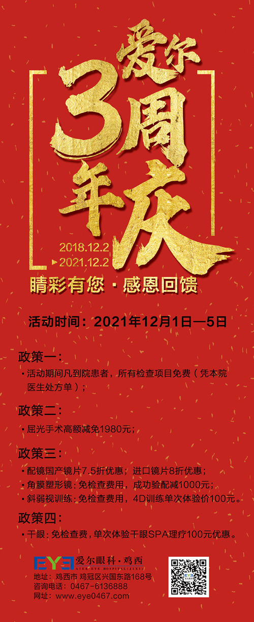 祝雞西愛爾眼科醫(yī)院三周年生日快樂!